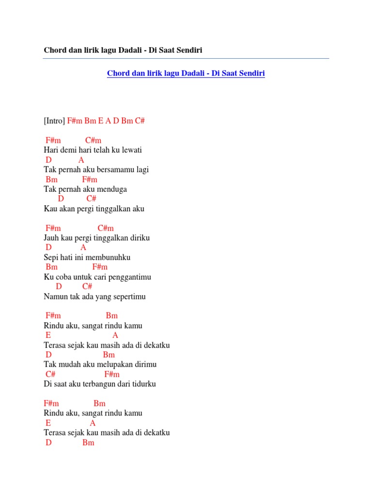 Chord Dan Lirik Lagu Dadali Di Saat Sendiri Pdf